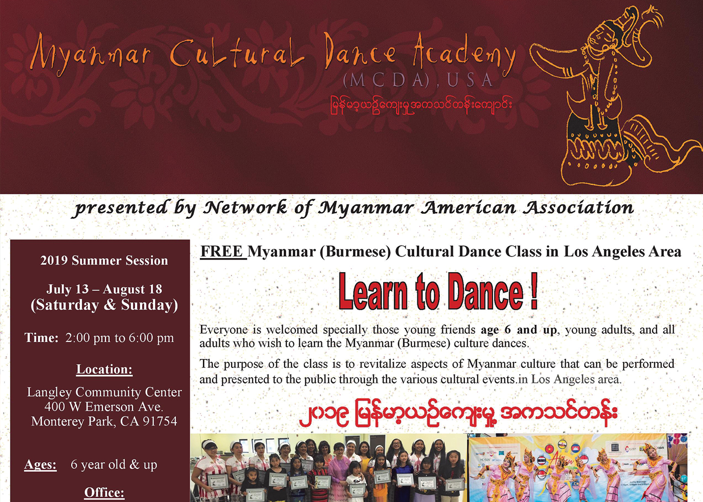 Free Myanmar Burmese Cultural Dance Class In Los Angeles Area July August 2019 Netmaa