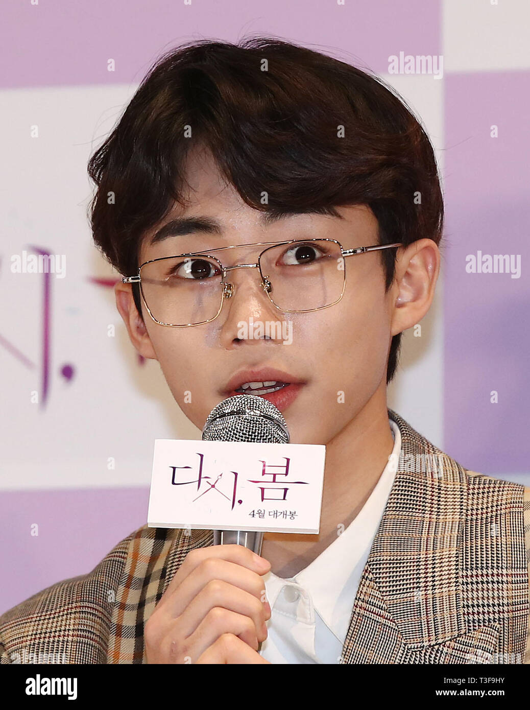 09th Apr 2019 S Korean Actor Park Ji Bin South Korean Actor Park Ji Bin Who Stars In The New Movie Spring Again Attends A Publicity Event In Seoul On April 8 2019 The